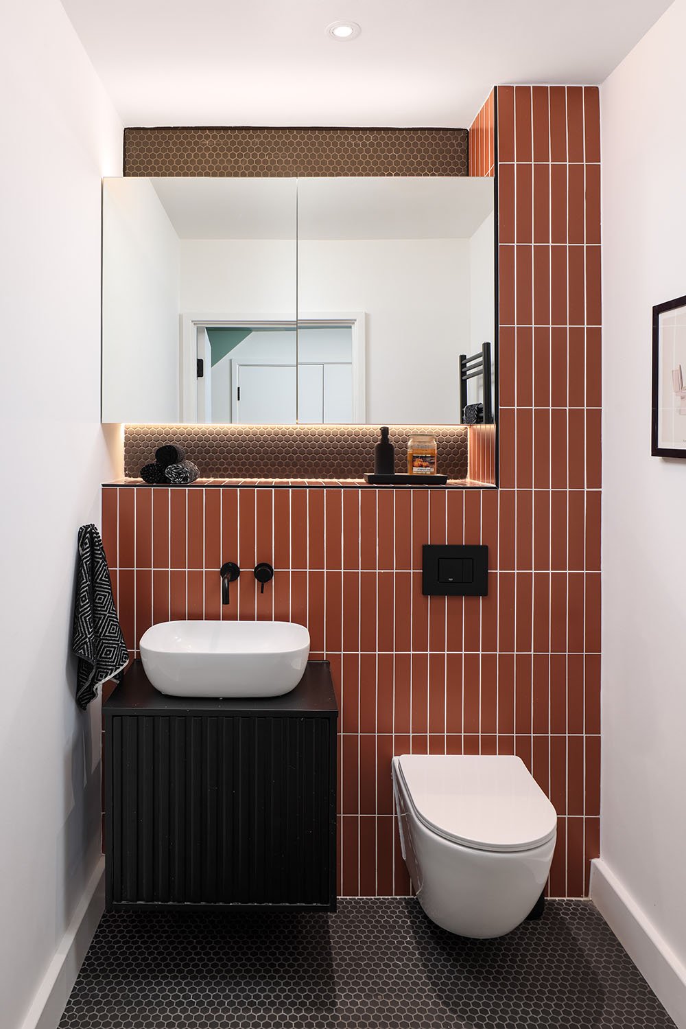 Whist our design aesthetic is minimal and natural, bathrooms are sometimes the place to be a little quirky. A bright tile can lift the space and brighten the start of your day, other times its kept minimal and loose fittings add the colour and texture.